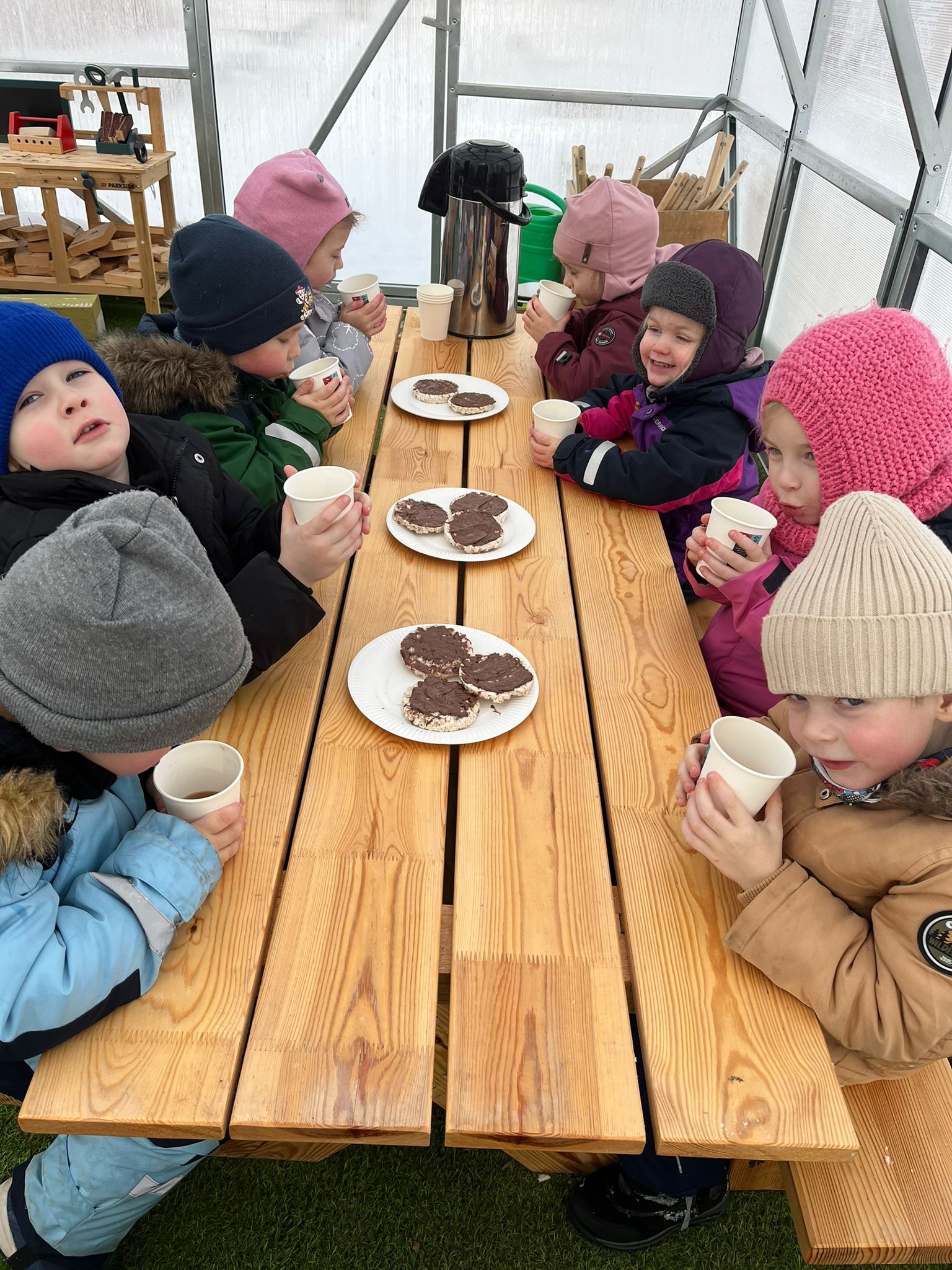Ne tikai lapas ir baltas, bet arī sniegs. Kā būtu zīmēt sniegā? Interesanti, bet ne tik viegli kā uz papīra. Pikniks ziemā. Tēja arī ziemā var būt silta un ap krūzīti var sasildīt rokas. Bērni secina, ka laukā ēst ir forši!